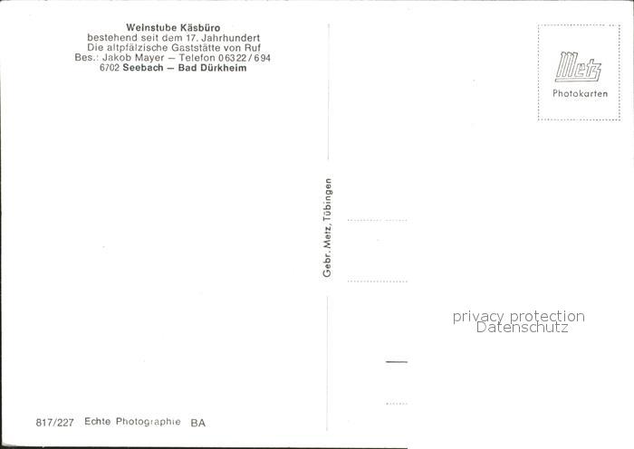 71998592 Seebach Bad Duerkheim Weinstube Kaesbuero postalisch nicht gelaufen Erhaltung siehe scans KatCode: 11110007332002