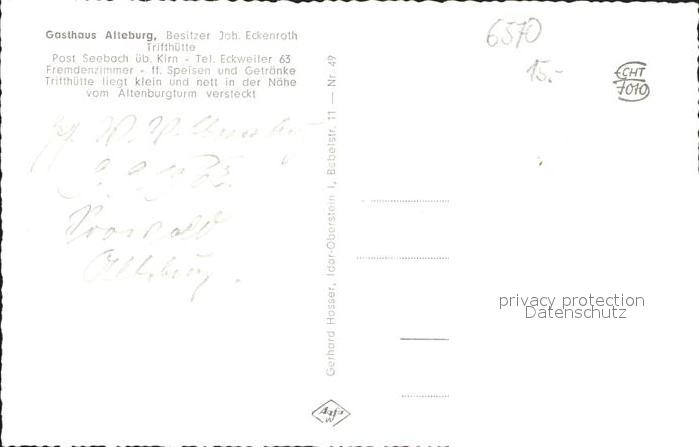 72148840 Seebach Kirn Gasthaus Alteburg Trifthuette mit Altenburgturm postalisch nicht gelaufen Erhaltung siehe scans KatCode: 11110007133052