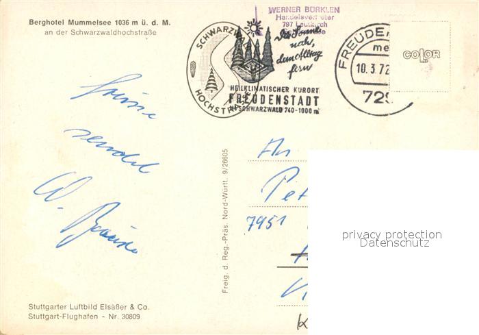 73686308 alte Postkarte Seebach Ortenaukreis Berghotel Mummelsee an der Schwarzwaldhochstrasse im Winter Fliegeraufnahme postalisch gelaufen Erhaltung siehe scans [FriedD77] KatCode: 11110008317126