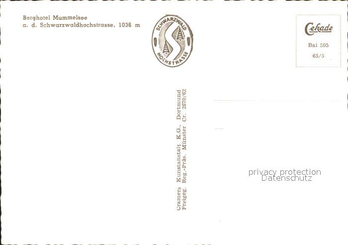 71830855 Seebach Ortenaukreis Berghotel Mummelsee Schwarzwaldhochstrasse postalisch nicht gelaufen Erhaltung siehe scans KatCode: 11110008317126