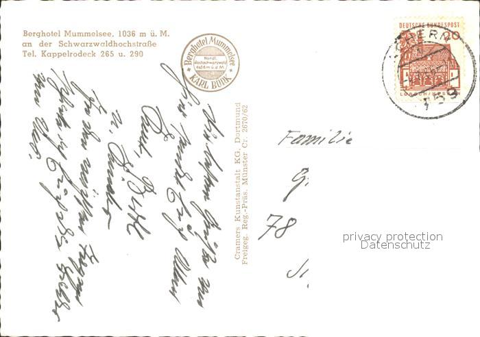 71830856 alte Postkarte Seebach Ortenaukreis Berghotel Mummelsee Schwarzwaldhochstrasse postalisch gelaufen Erhaltung siehe scans KatCode: 11110008317126