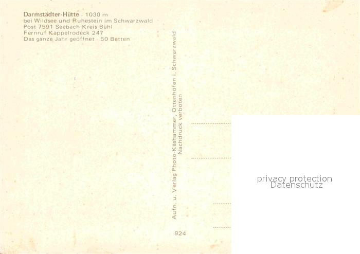 72719131 Seebach Ortenaukreis Darmstaedter Huette bei Wildsee und Ruhestein postalisch nicht gelaufen Erhaltung siehe scans [LiesaD40] KatCode: 11110008317126