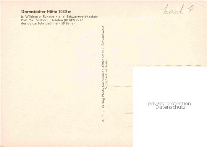 72793259 Seebach Ortenaukreis Darmstaedter Huette bei Wildsee und Ruhestein postalisch nicht gelaufen Erhaltung siehe scans [LiesaD40] KatCode: 11110008317126