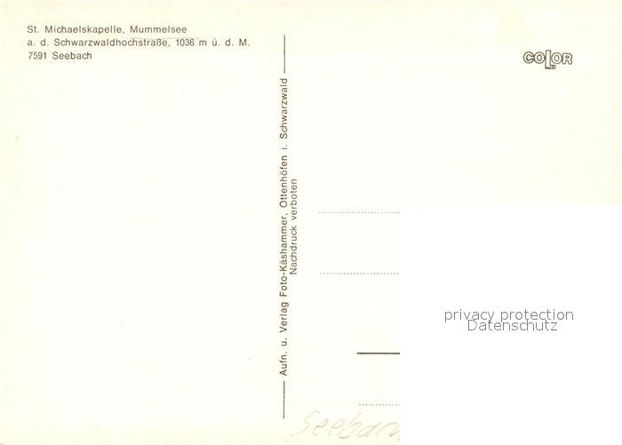 73029927 Seebach Ortenaukreis Mummelsee Michaelskapelle postalisch nicht gelaufen Erhaltung siehe scans [KathaD81] KatCode: 11110008317126