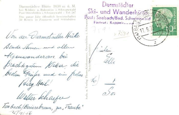 73902463 alte Postkarte Seebach Ottenhoefen Schwarzwald Darmstaedter Huette postalisch gelaufen Erhaltung siehe scans [FriedD77] KatCode: 11110008317102