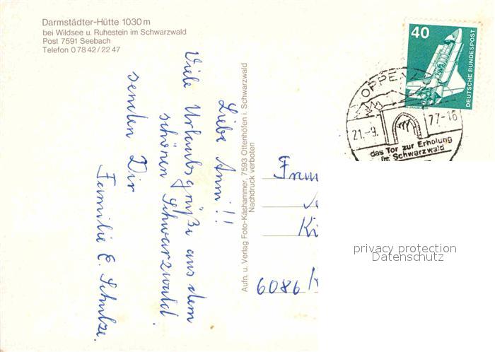 72725908 alte Postkarte Seebach Ottenhoefen Schwarzwald Darmstaedter Huette bei Wildsee postalisch gelaufen Erhaltung siehe scans [WerneD78] KatCode: 11110008317102