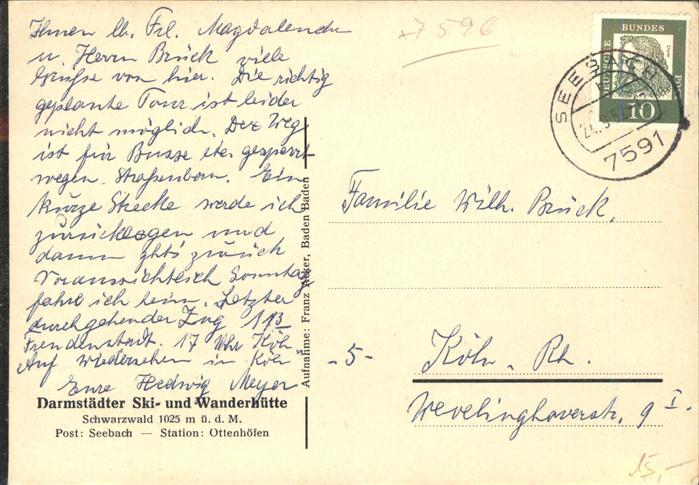 41209681 Seebach Ottenhoefen Schwarzwald Darmstädtr Ski u. Wanderhütte KatCode 11110008317102