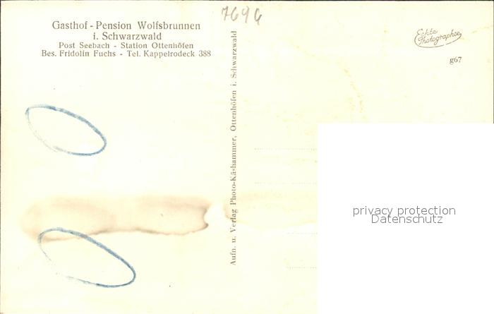 31720434 Seebach Ottenhoefen Schwarzwald Gasthaus Pension Wolfsbrunnen postalisch nicht gelaufen Erhaltung siehe scans KatCode: 11110008317102
