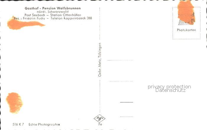 41767479 Seebach Ottenhoefen Schwarzwald Gasthof Pension Wolfsbrunnen postalisch nicht gelaufen Erhaltung siehe scans KatCode: 11110008317102