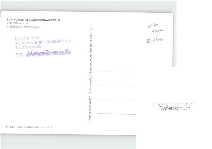 72135333 Seebach Ottenhoefen Schwarzwald Seebacher Trachtenpaar postalisch nicht gelaufen Erhaltung siehe scans KatCode: 11110008317102
