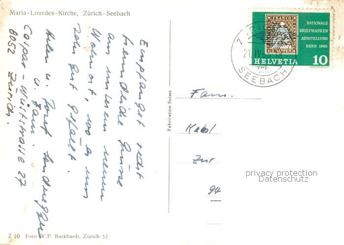 13783689 alte Postkarte Seebach Zuerich ZH Maria-Lourdes-Kirche Aussenansicht postalisch gelaufen Erhaltung siehe scans [LiesaD40] KatCode: 11470260920592