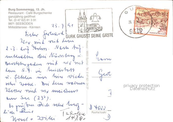 72137977 alte Postkarte Seeboden Millstaettersee Burg Sommeregg Restaurant Cafe Burgschenke postalisch gelaufen Erhaltung siehe scans KatCode: 11390212020634