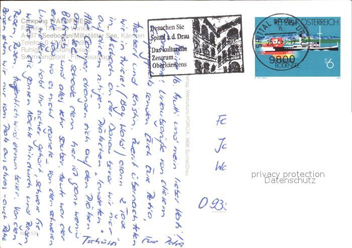 72376082 alte Postkarte Seeboden Millstaettersee Camping Waldfriede postalisch gelaufen Erhaltung siehe scans KatCode: 11390212020634