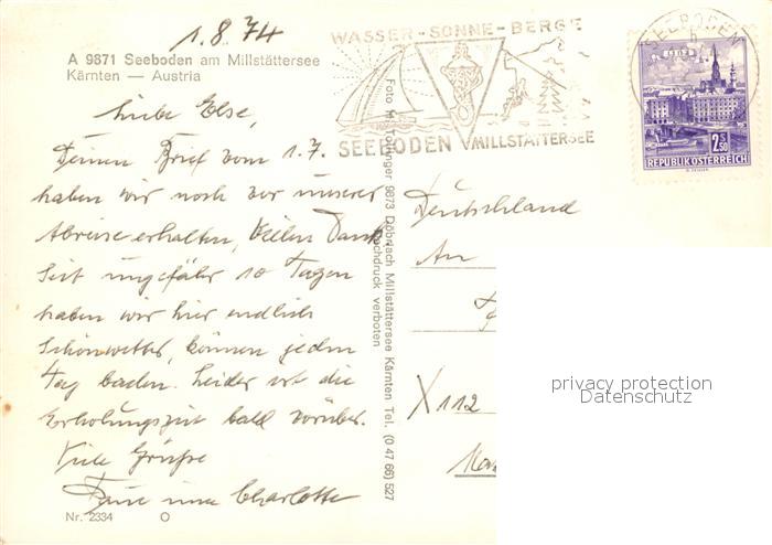 73303584 alte Postkarte Seeboden Millstaettersee Fliegeraufnahme postalisch gelaufen Erhaltung siehe scans [FriedD77] KatCode: 11390212020634
