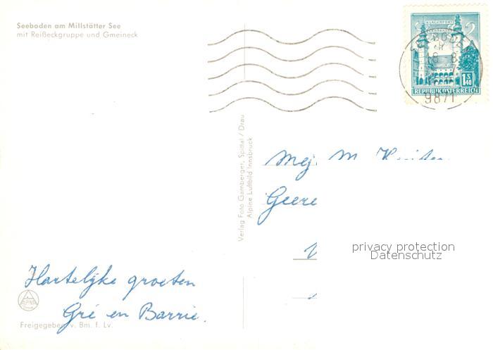72943023 alte Postkarte Seeboden Millstaettersee Fliegeraufnahme Reisseckgruppe Gmeineck postalisch gelaufen Erhaltung siehe scans [KathaD81] KatCode: 11390212020634