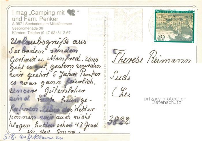 73649717 alte Postkarte Seeboden Millstaettersee Fliegeraufnahme Restaurant Cafe Camping Penker postalisch gelaufen Erhaltung siehe scans [WerneD78] KatCode: 11390212020634