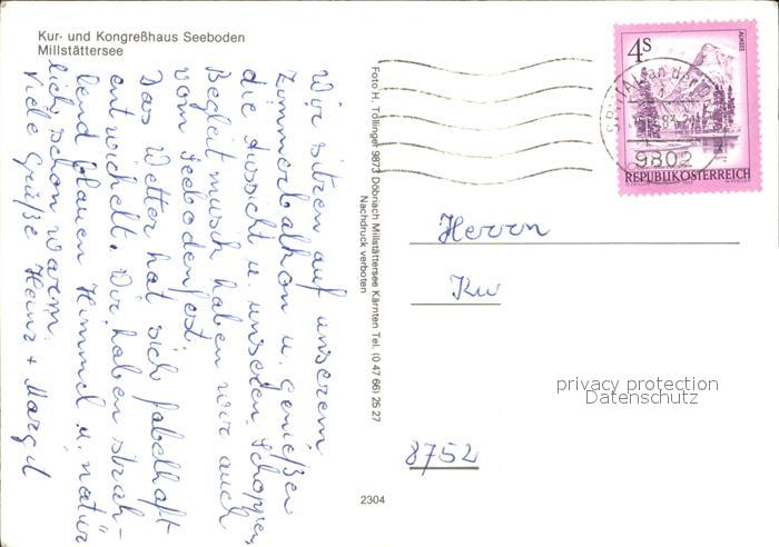 72257088 alte Postkarte Seeboden Millstaettersee Kurhaus Kongresshaus postalisch gelaufen Erhaltung siehe scans KatCode: 11390212020634