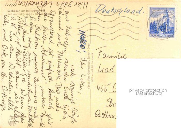 72709548 alte Postkarte Seeboden Millstaettersee mit Reisseckgruppe und Gmeineck Fliegeraufnahme postalisch gelaufen Erhaltung siehe scans [FriedD77] KatCode: 11390212020634