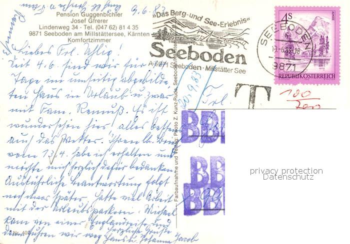 73516861 alte Postkarte Seeboden Millstaettersee Pension Guggenbichler postalisch gelaufen Erhaltung siehe scans [KathaD81] KatCode: 11390212020634