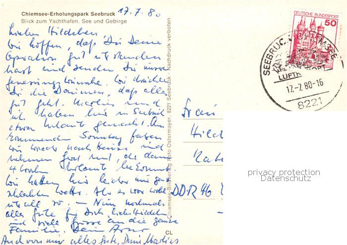 73837443 alte Postkarte Seebruck Chiemsee Blick zum Yachthafen See und Gebirge postalisch gelaufen Erhaltung siehe scans [FriedD77] KatCode: 11110009189143