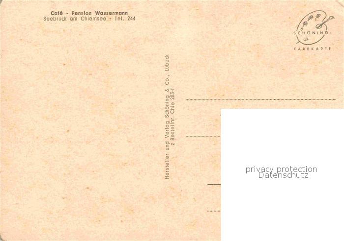 72650942 Seebruck Chiemsee Cafe Pension Wassermann Kirche Segelboot postalisch nicht gelaufen Erhaltung siehe scans [FriedD77] KatCode: 11110009189143