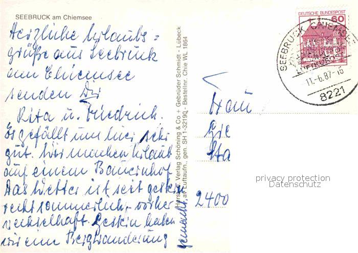 72856890 alte Postkarte Seebruck Chiemsee Fliegeraufnahme postalisch gelaufen Erhaltung siehe scans [AndreD76] KatCode: 11110009189143