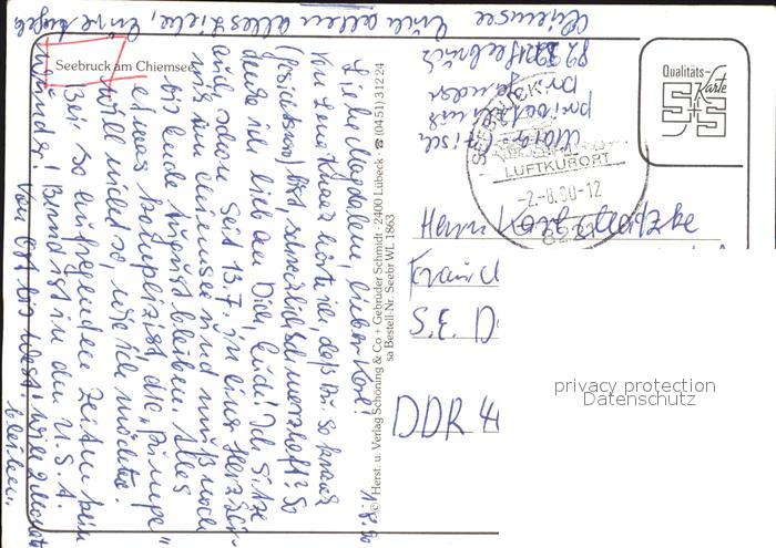 72506099 alte Postkarte Seebruck Chiemsee Fliegeraufnahme postalisch gelaufen Erhaltung siehe scans KatCode: 11110009189143