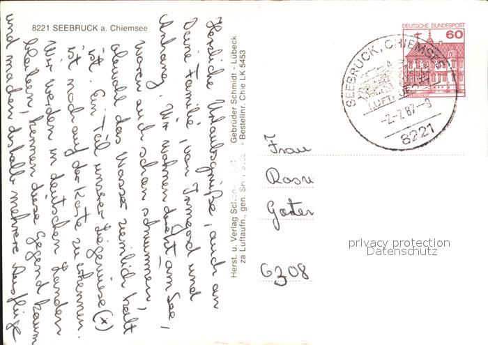72452634 alte Postkarte Seebruck Chiemsee Fliegeraufnahme postalisch gelaufen Erhaltung siehe scans KatCode: 11110009189143