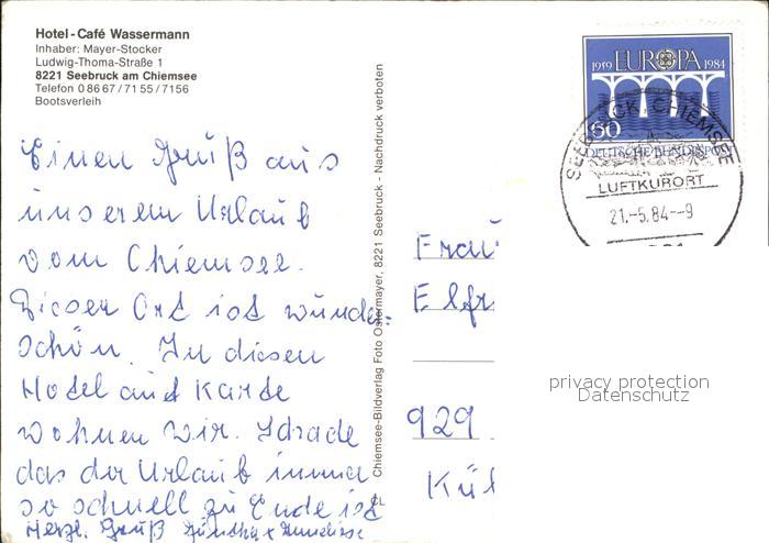 72516693 alte Postkarte Seebruck Chiemsee Hotel Cafe Wassermann postalisch gelaufen Erhaltung siehe scans KatCode: 11110009189143