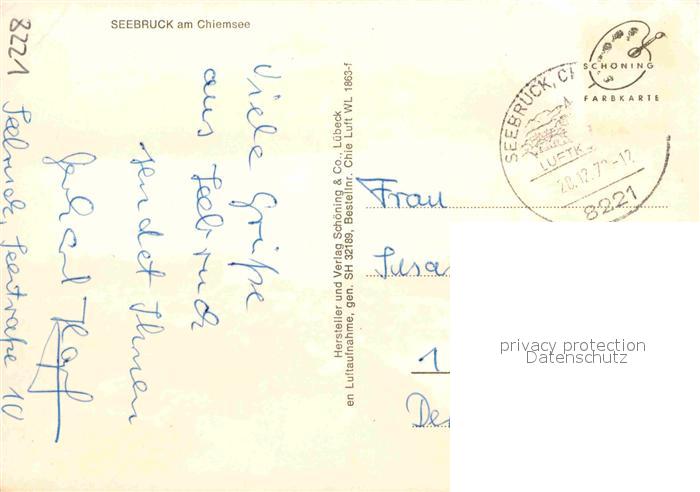 72733946 alte Postkarte Seebruck Chiemsee mit Alpenpanorama Fliegeraufnahme postalisch gelaufen Erhaltung siehe scans [FriedD77] KatCode: 11110009189143
