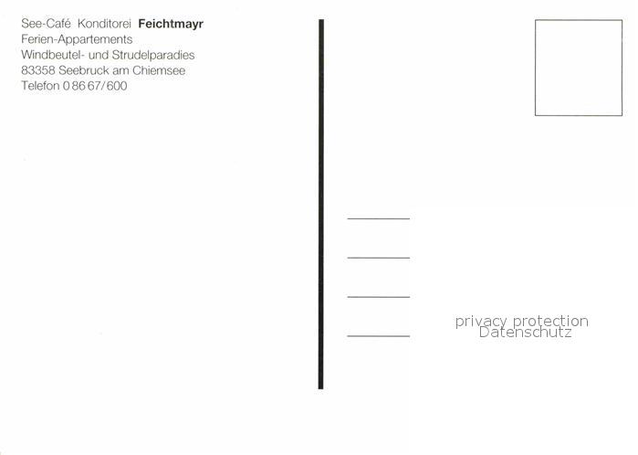 72674084 Seebruck Chiemsee See Cafe Konditorei Feichtmayr Ferien Appartements postalisch nicht gelaufen Erhaltung siehe scans [WerneD78] KatCode: 11110009189143