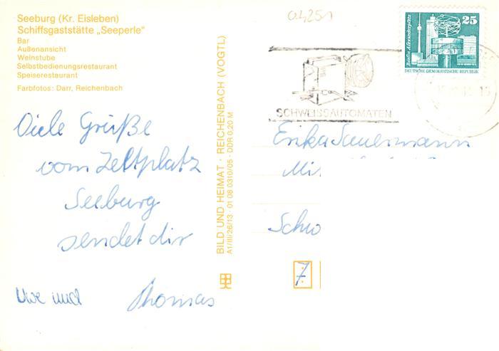 73947283 alte Postkarte Seeburg Eisleben Schiffsgaststaette Seeperle Bar Aussenansicht Weinstube Selbstbedienungsrestaurant Speiserestaurant postalisch gelaufen Erhaltung siehe scans [WerneD78] KatCode: 11110015087385