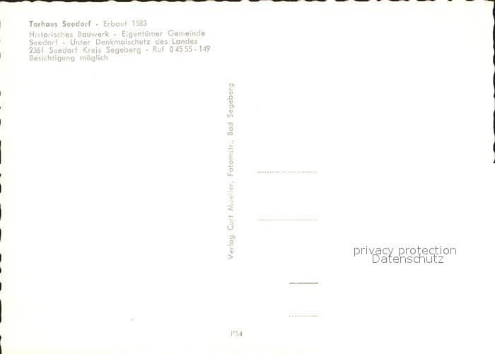 71931095 Seedorf Bad Segeberg Torhaus postalisch nicht gelaufen Erhaltung siehe scans KatCode: 11110001060075