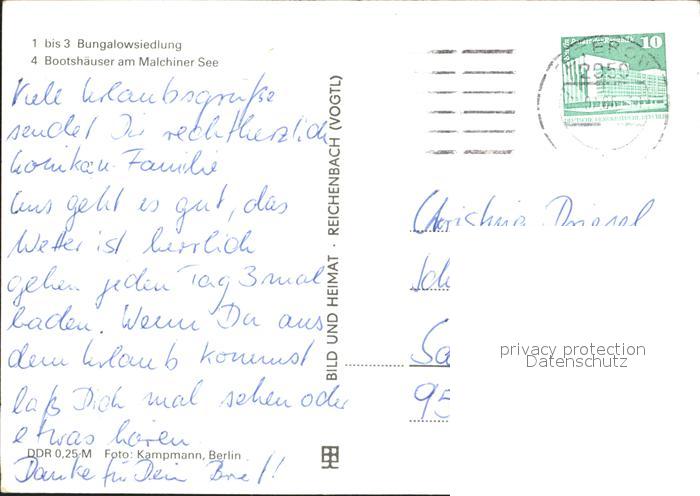 72335189 alte Postkarte Seedorf Basedow Bungalowsiedlung Bootshaeuser am Malchiner See postalisch gelaufen Erhaltung siehe scans KatCode: 11110013052005