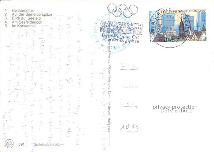 71905214 alte Postkarte Seefeld Starnberg Bergbahn Rosshuette Reitherspitz Seefelderspitze Seefelderjoch Karwendel postalisch gelaufen KatCode: 11110009188132