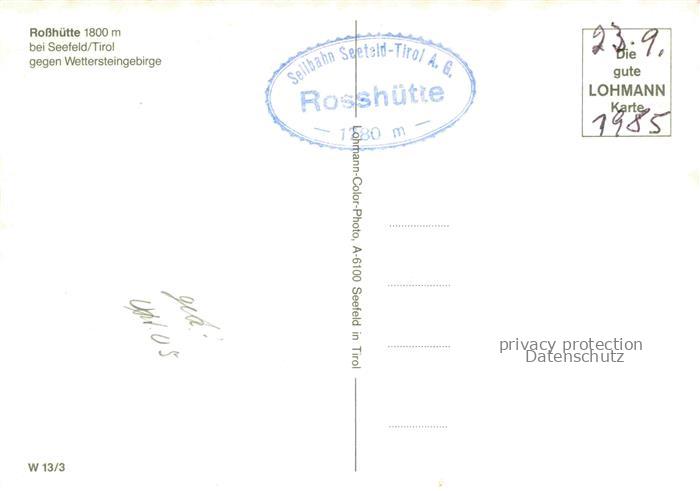 74085774 Seefeld Tirol AT Rosshuette mit Wettersteingebirge postalisch nicht gelaufen Erhaltung siehe scans [WerneD78] KatCode: 11390332070351