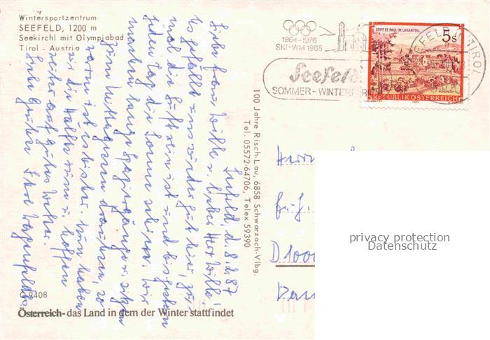 74150747 alte Postkarte SEEFELD Tirol AT Seekirchl mit Olympiabad postalisch gelaufen Erhaltung siehe scans [WerneD78] KatCode: 11390332070351