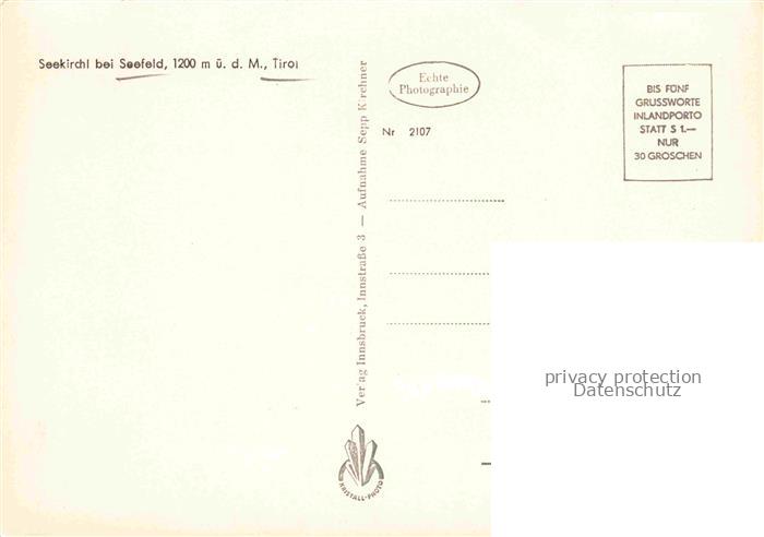 Seefeld Tirol AT Seekirchl Panorama postalisch nicht gelaufen Erhaltung siehe scans [WerneD78] Wern Katcode 11390332070351