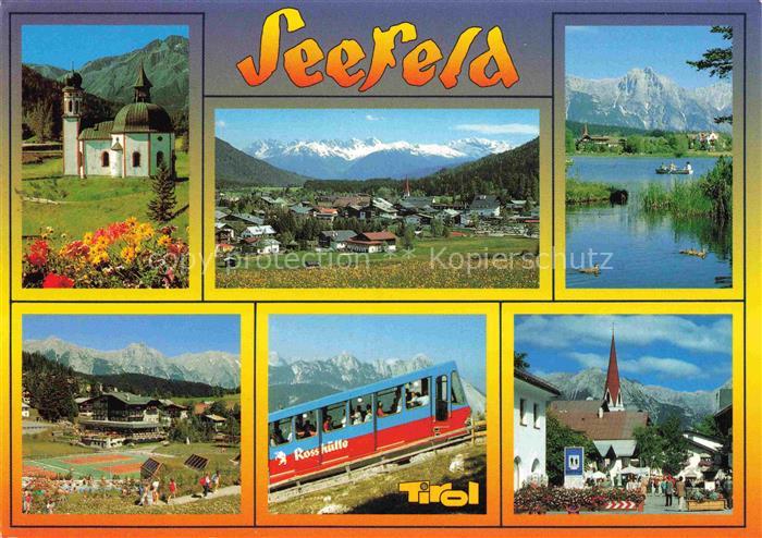 74088413 alte Postkarte Seefeld Tirol AT Teilansichten Kirche Zahnradbahn Rosshuette Landschaftspanorama Alpen postalisch gelaufen Erhaltung siehe scans [FriedD77] KatCode: 11390332070351