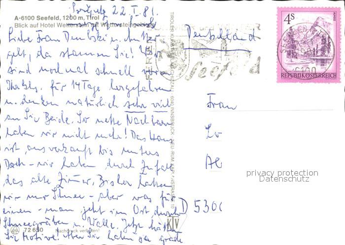 72462151 alte Postkarte Seefeld Tirol Blick auf Hotel Wetterstein Wettersteingebirge postalisch gelaufen Erhaltung siehe scans KatCode: 11390332070351