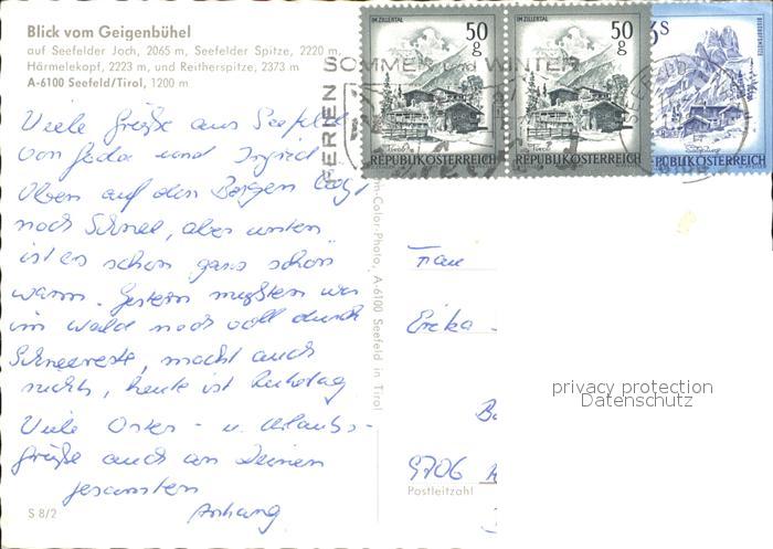 72517942 alte Postkarte Seefeld Tirol Blick vom Geigenbuehel auf Seefelder Joch postalisch gelaufen Erhaltung siehe scans KatCode: 11390332070351