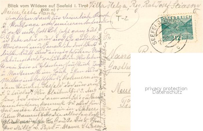 43107583 alte Postkarte Seefeld Tirol Blick vom Wildsee Karwendelgebirge postalisch gelaufen Erhaltung siehe scans [FriedD77] KatCode: 11390332070351