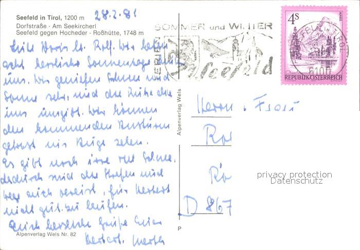 72079938 alte Postkarte Seefeld Tirol Dorfstrasse Am Seekicherl Rosshuette postalisch gelaufen Erhaltung siehe scans KatCode: 11390332070351