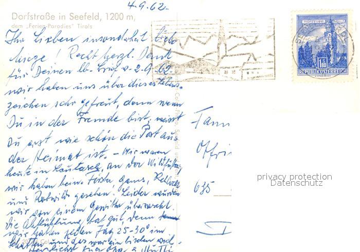 73156567 alte Postkarte Seefeld Tirol Dorfstrasse Brunnen Strassencafe postalisch gelaufen Erhaltung siehe scans [FriedD77] KatCode: 11390332070351