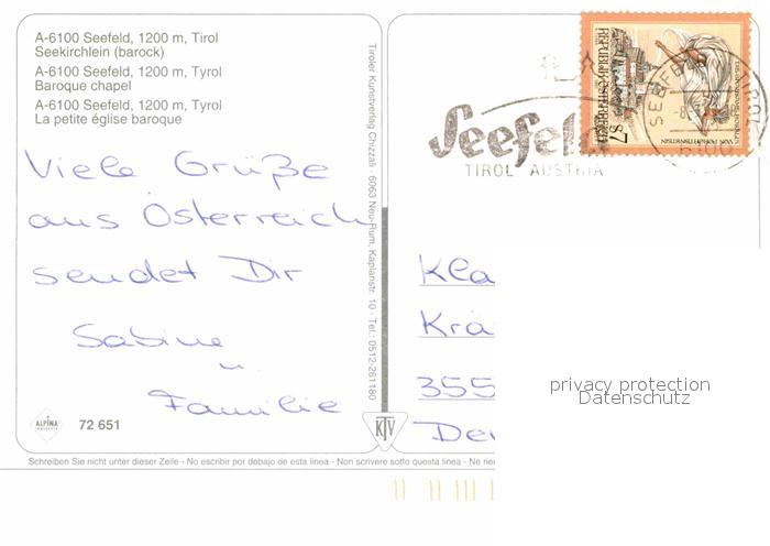 72865593 alte Postkarte Seefeld Tirol Eislaufbahn mit Seekirchlein postalisch gelaufen Erhaltung siehe scans [WerneD78] KatCode: 11390332070351
