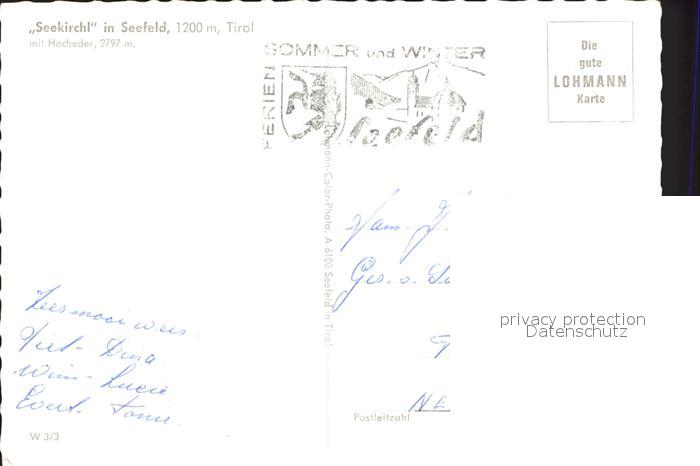 72139685 alte Postkarte Seefeld Tirol Eislaufbahn Seekirchl mit Hocheder postalisch gelaufen Erhaltung siehe scans KatCode: 11390332070351