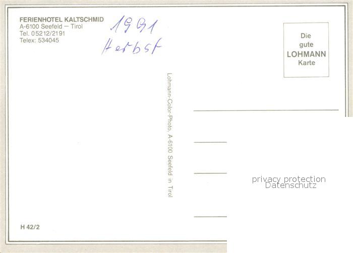 13009985 Seefeld Tirol Ferienhotel Kaltschmid postalisch nicht gelaufen Erhaltung siehe scans [NatalD47] KatCode: 11390332070351