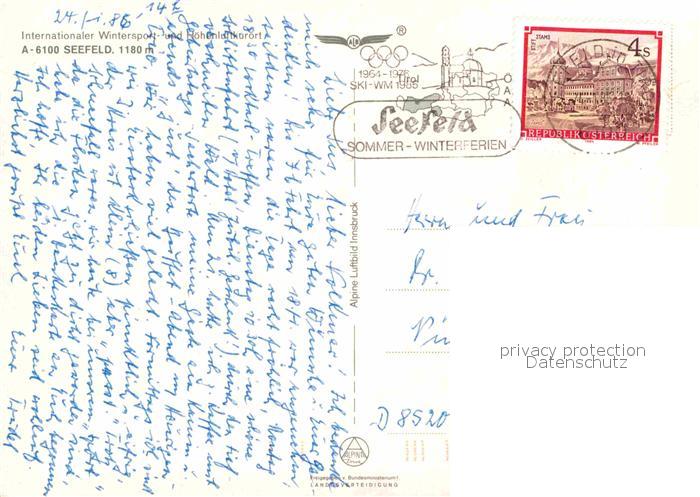 72761168 alte Postkarte Seefeld Tirol Fliegeraufnahme mit Gschwandtkopf postalisch gelaufen Erhaltung siehe scans [LiesaD40] KatCode: 11390332070351