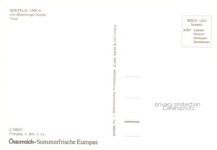 73145184 Seefeld Tirol Fliegeraufnahme mit Mieminger Kette postalisch nicht gelaufen Erhaltung siehe scans [WerneD78] KatCode: 11390332070351