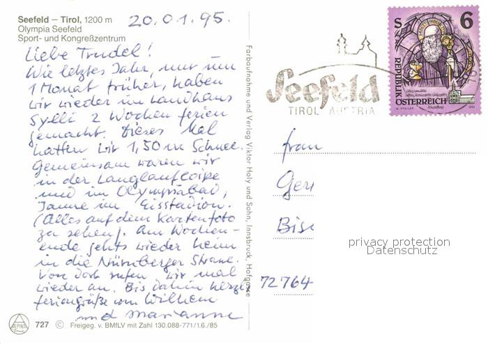 72878419 alte Postkarte Seefeld Tirol Fliegeraufnahme Sport- Kongresszentrum postalisch gelaufen Erhaltung siehe scans [AndreD76] KatCode: 11390332070351